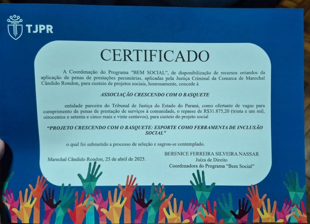 A Prefeitura de Marechal Rondon/ Associação Crescendo com o Basquete esteve presente no torneio MINI BASQUETE BRASIL, em Foz do Iguaçu, no final de semana do dia 05 de Julho com a equipe sub-10, que teve no comando o professor Jordon Kremer, auxiliado por três mães dos jovens atletas. Na segunda feira, dia 07, embarcou o sub12 para a competição também!