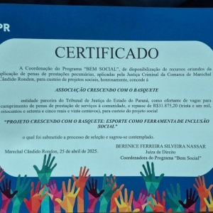 A Prefeitura de Marechal Rondon/ Associação Crescendo com o Basquete esteve presente no torneio MINI BASQUETE BRASIL, em Foz do Iguaçu, no final de semana do dia 05 de Julho com a equipe sub-10, que teve no comando o professor Jordon Kremer, auxiliado por três mães dos jovens atletas. Na segunda feira, dia 07, embarcou o sub12 para a competição também!