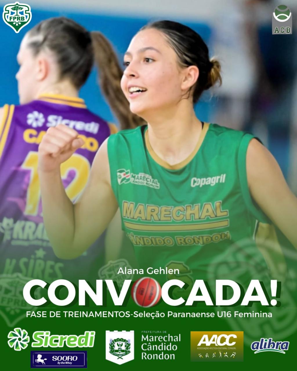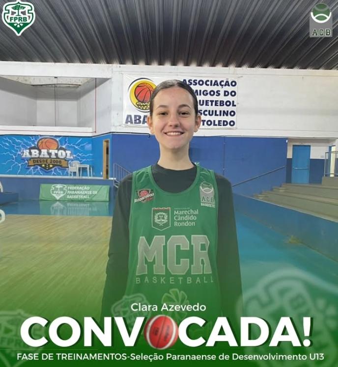 No primeiro trimestre de 2025, a Pref. Mal.C.Rondon/AACC/ACB já possui grande representatividade quanto às convocações em Seleções Paranaenses. Só em abril já foram 4 atletas convocados para os treinamentos da Federação Paranaense de Basketball, Alana Gehlen(sub16); Heitor Cardoso(sub16); João Paulo Nascimento (sub15) e Clara Azevedo(sub13). Além disso, a professora Kauanny Schmidt foi chamada para compor as comissões técnicas das seleções sub16 e sub13 feminina!